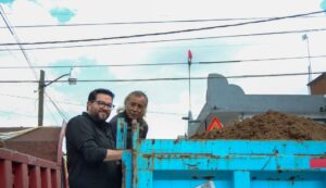 En su gira de trabajo, el edil también puso en marcha la construcción de tres proyectos de drenaje sanitario, considerados prioritarios por su impacto en la salud pública: 43 metros frente al auditorio de Santiaguito, 132 metros detrás de la UPVT y 250 metros en la comunidad de El Rosal.